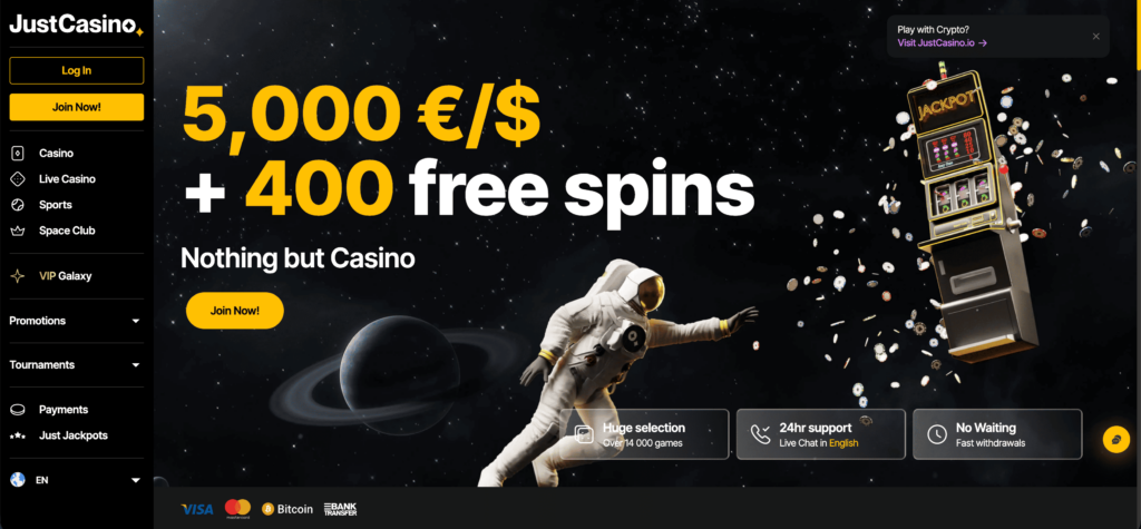 - JustCasino — large game library and loyalty rewards