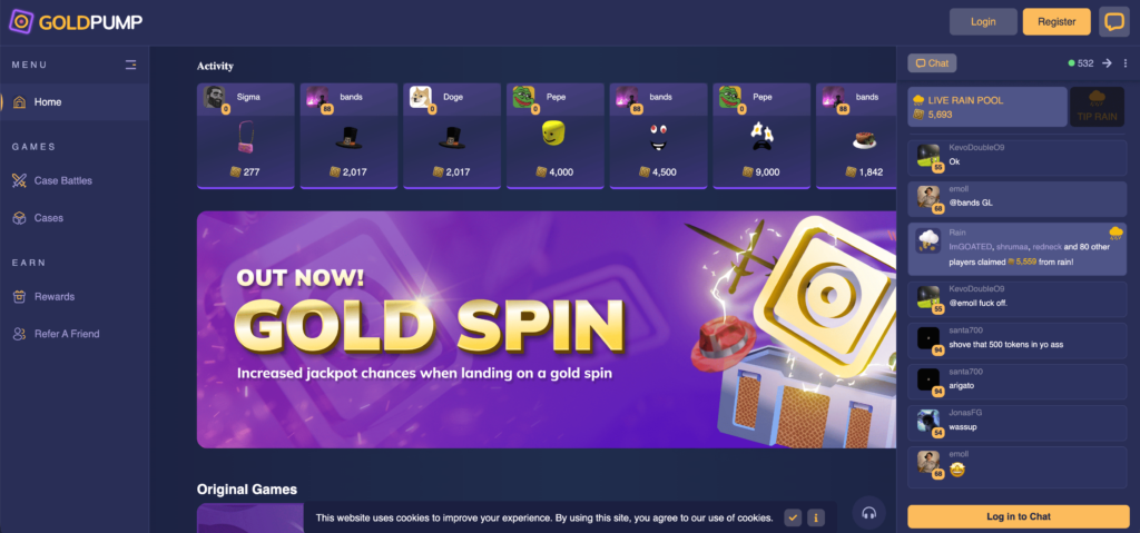 Compared to other Roblox gambling websites, GoldPump feels closer to a reward ecosystem with gambling elements layered on top.