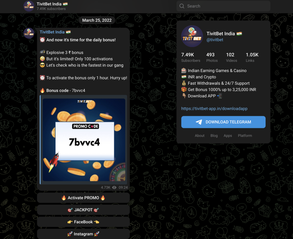 - Frequent bonus campaigns for users who stick with Telegram