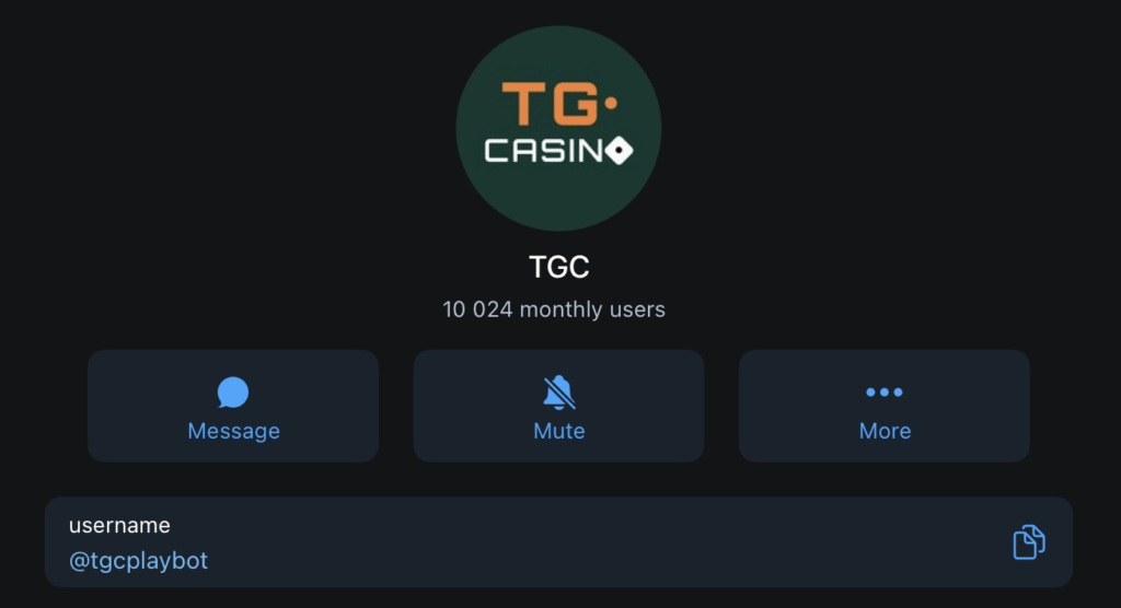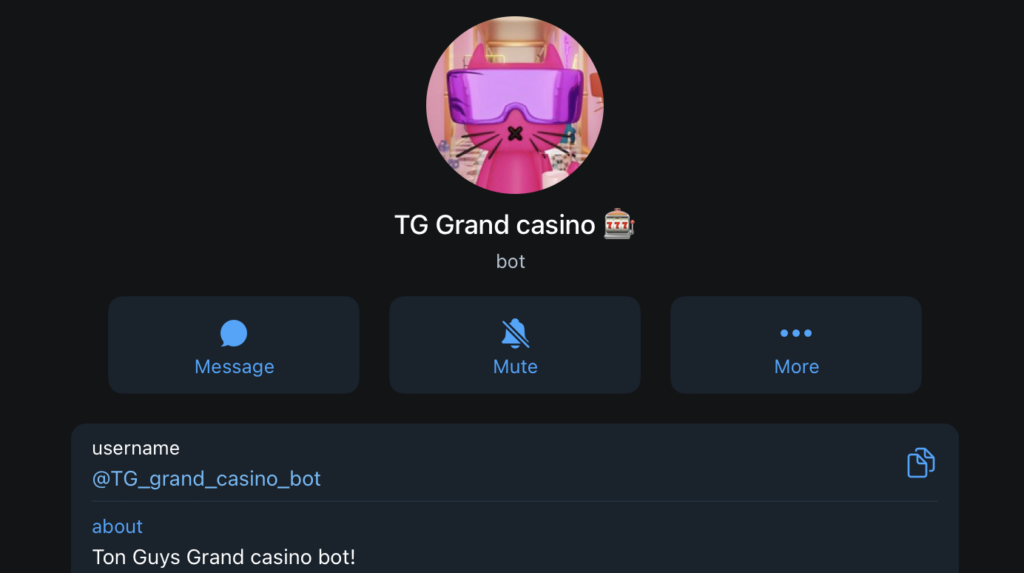 TG Grand Casino is another Telegram-native bot that’s all about quick, on-the-go gaming inside the messenger. Just type in the /start command to get the bot up and running, and then you can dive into the game menu, top up your balance, and start playing without leaving Telegram.