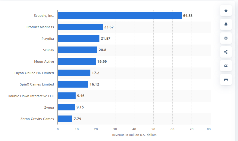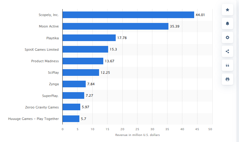 According to Statista, the biggest social casino revenue via Android was generated by Scopely, which was 44 million dollars in June 2025.