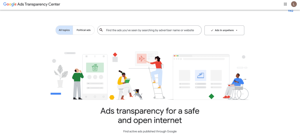 Go to adstransparency.google.com, type an advertiser name or keyword into the search bar, and you’re in. That’s the short version. The longer version is where it gets useful.