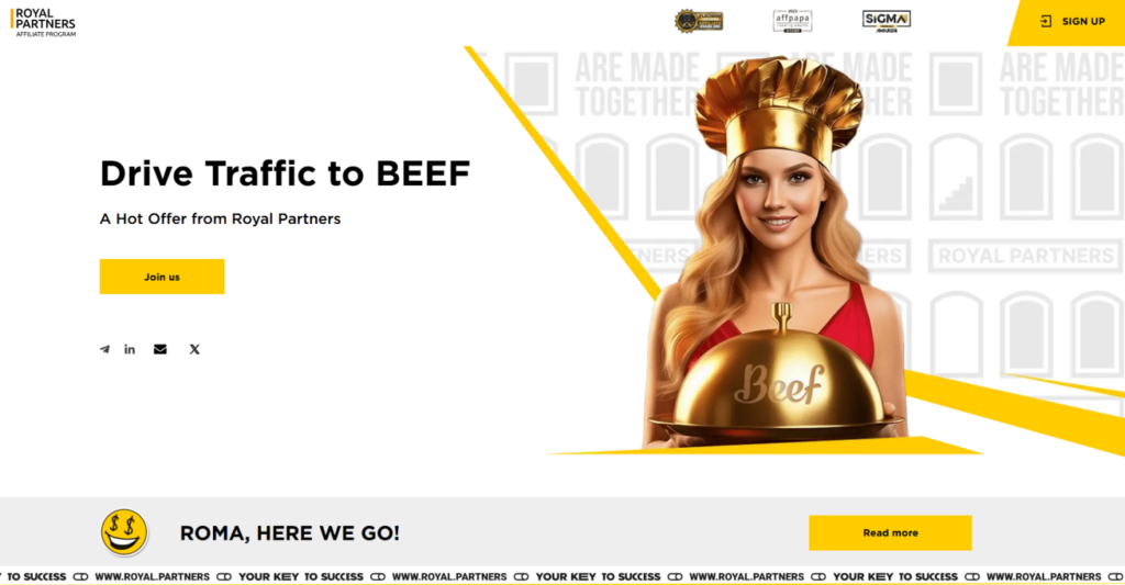 Royal Partners is a program working with licensed iGaming offers. With access to 14 brands and more than 20 GEOs, affiliates can scale traffic and earn across a wide range of products – from online casino to sports betting and live games. The program provides multiple commission models, competitive rates, and an advanced retention system. The account area includes detailed analytics, a library of adapted creatives, postback integrations with tracking platforms, and support from a personal manager.