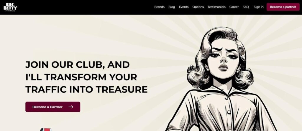 BigBetty Partners is a platform launched in 2021 that has secured a strong position in the market. The company acts as a direct advertiser for high-converting casino brands, including both public and exclusive solutions. For affiliates, BigBetty means access to strong products, established CRM processes, and a focus on traffic quality. The program prioritizes transparency and speed: a clear commission structure, fast settlements, and an advanced analytics platform.