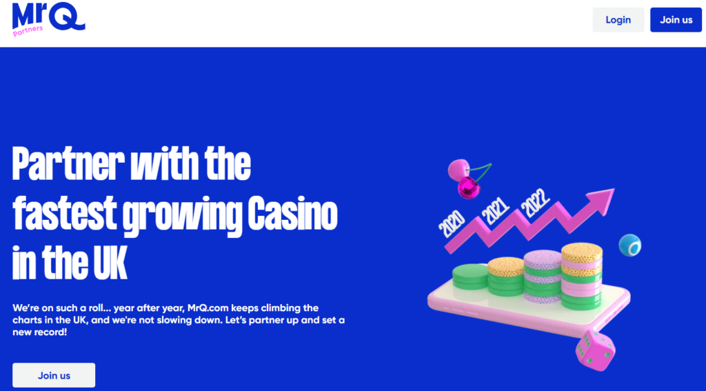 His partner program is particularly attractive for its high RevShare and strong conversion rate among the mobile audience. Unlike major international brands, MrQ relies on locality, which improves the perception of British players. The program is great for SEO webmasters and social channels.
