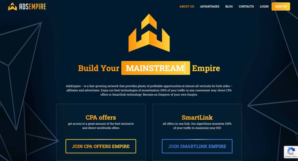 AdsEmpire is a global affiliate network that provides marketers with exclusive Dating offers as well as Gaming, Sweepstakes, Crypto and other types of options. A distinctive feature of AdsEmpire is the possibility to create two affiliate accounts: CPA (CPS) and Smartlink. This is done for more comfortable work of marketers, who can choose the best option for themselves, based on their experience and traffic source. As for the sources, the affiliate network accepts any traffic from all over the world, except for motivated, fraud and spam.