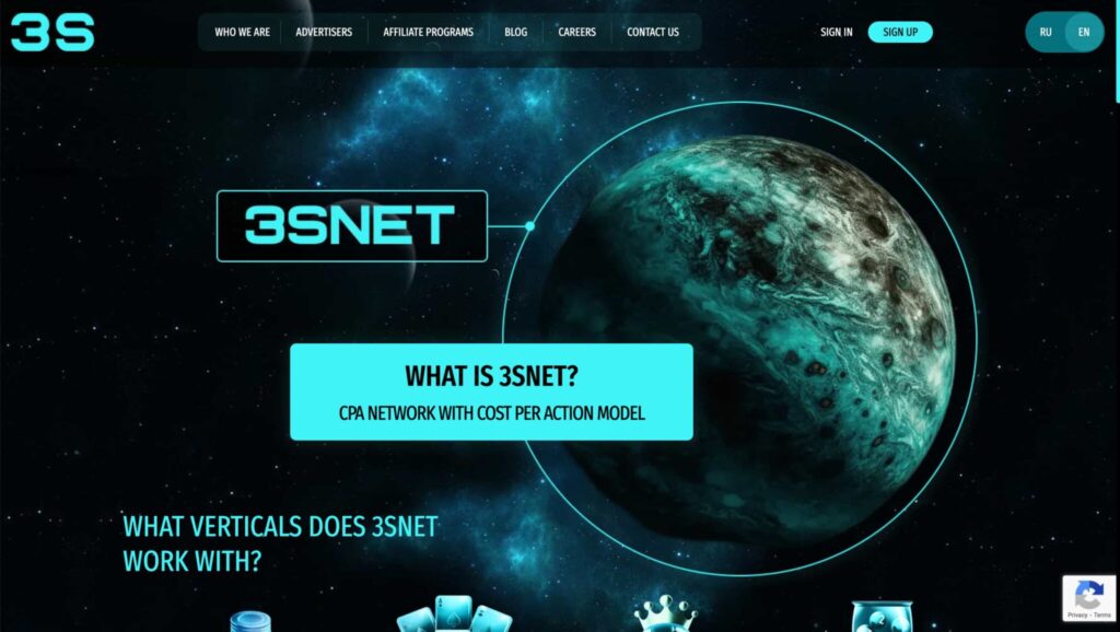 The advertisers are such recognizable brands as LEON, Mostbet, Parimatch, 4RABET, BetBoom, etc. 3SNET supports various payment models, including CPA, CPL, RS, and Hybrid.
