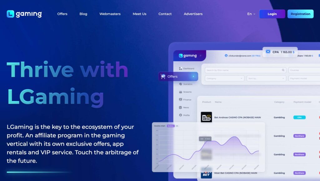 LGaming is a CPA network in the iGaming vertical. It includes such niches as Betting, Gambling, Crypto, and Casino. Now the offers number is 1.000. They include exclusive offers from direct advertisers and BetAndreas’ in-house product.